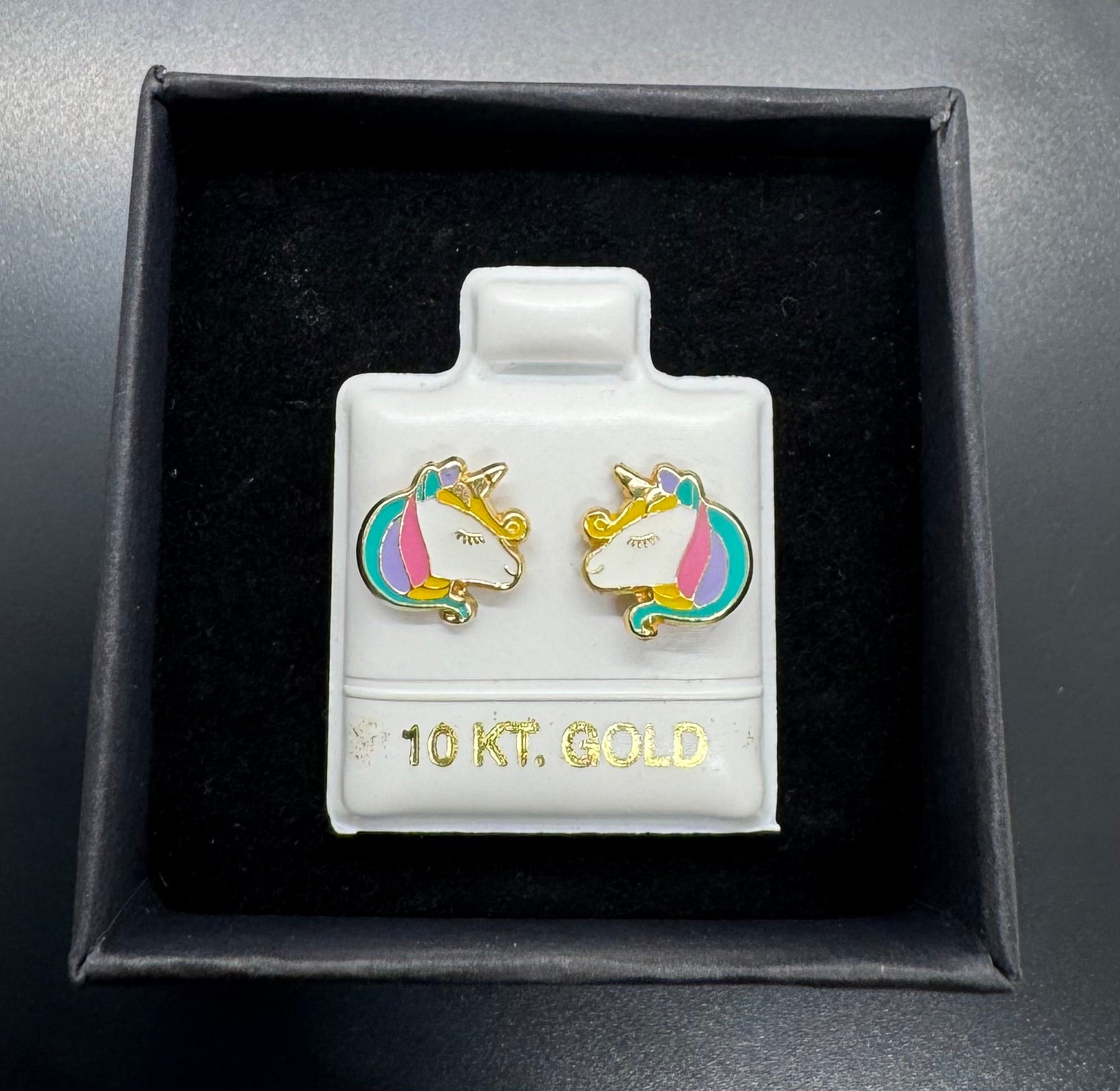 Add a little magic to your jewelry collection with our 10k Gold Unicorn Broquel Earrings. Crafted from genuine 10k solid gold and accented with colorful enamel, these adorable unicorn studs are perfect for little ones or anyone who loves a playful, whimsical touch