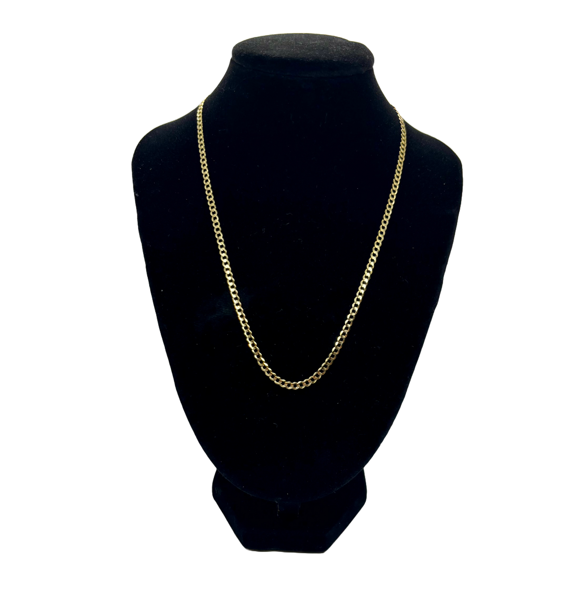 A sleek staple in any jewelry collection. This 10k gold Cuban link chain features a flat, interlocking design with a 3mm width that adds just the right touch of shine. At 16 inches, it sits beautifully on the neckline — perfect for layering or as a minimalist solo piece.