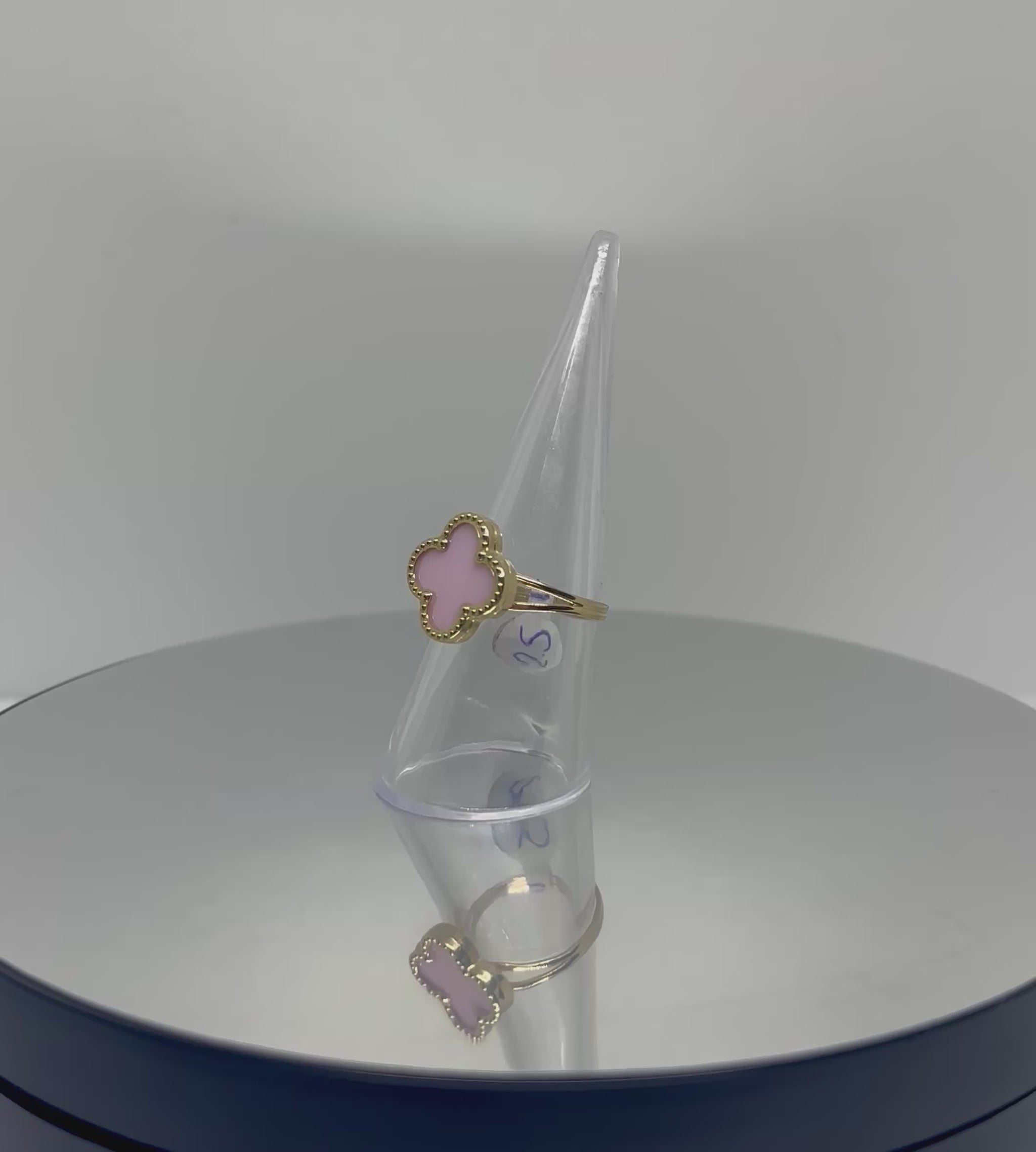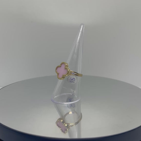 Add a soft pop of color to your look with this charming 10k Gold Pink Clover Ring. Designed with a beautiful pink clover centerpiece framed by delicate gold beading, this piece is perfect for layering or standing out on its own.