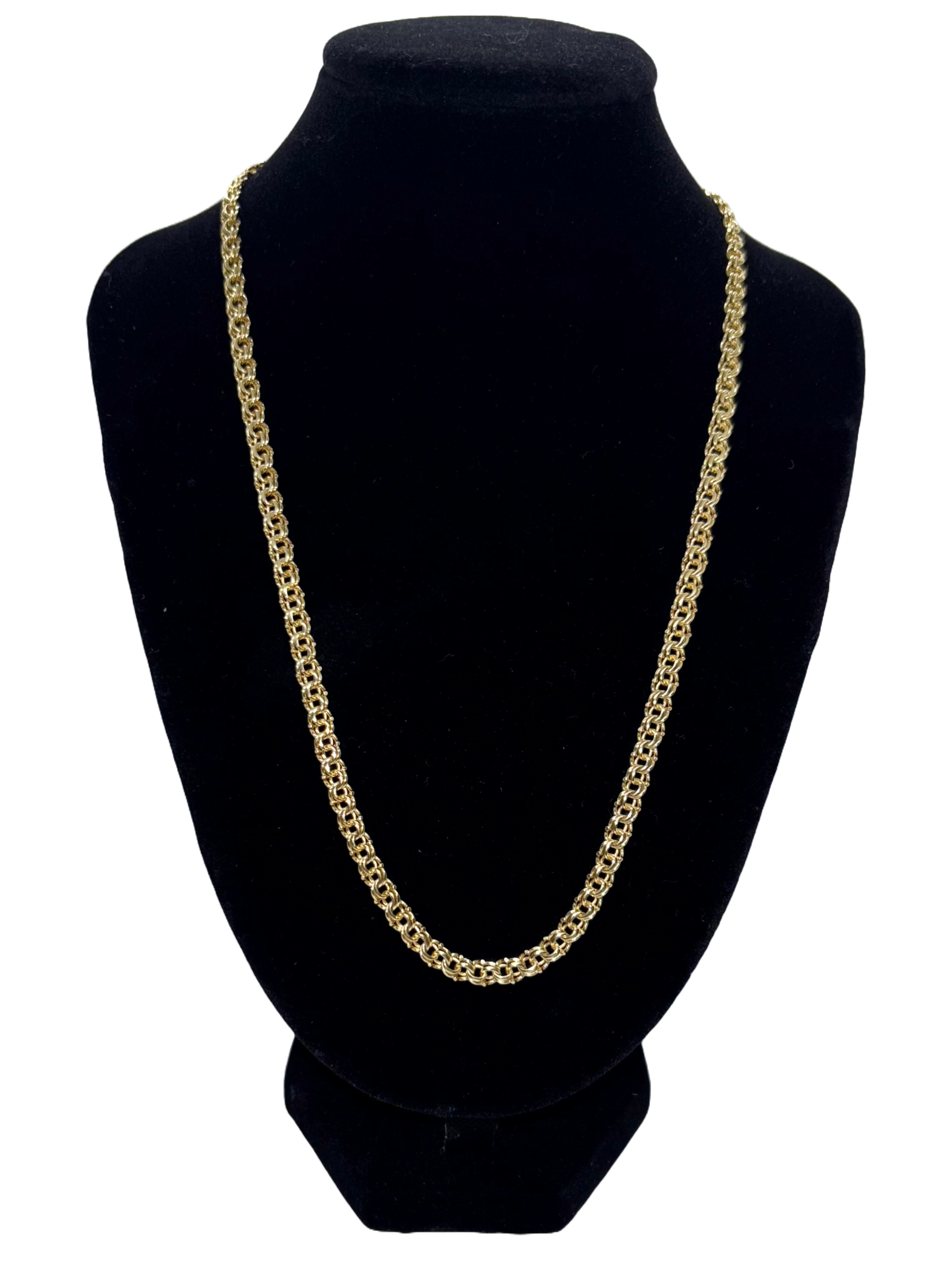 Elevate your gold game with this beautifully detailed 10k gold Chinese link chain (Tejido Chino). Measuring 4mm wide, this chain features an intricate woven design that gives it a rich texture and eye-catching shine. Finished with a secure lobster clasp, it’s perfect for everyday wear or special occasions.